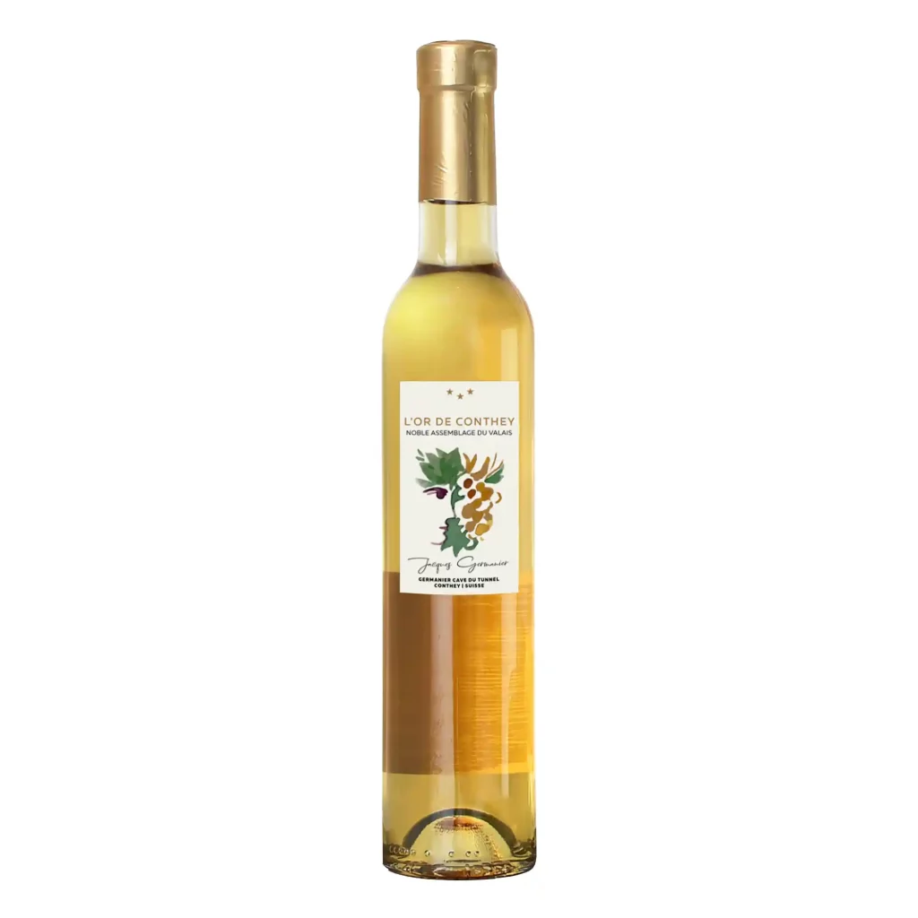 Spécialité emblématique de notre cave depuis plus de 20 ans, l’Or de Conthey est un vin liquoreux raffiné, né d’un assemblage harmonieux de cépages blancs. Issu de vendanges tardives sur les prestigieuses terrasses de Conthey, il allie douceur, intensité et fraîcheur dans une expression unique de noblesse et de terroir.